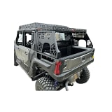 The headache rack features strategically incorporated moly panel holes and holes for your rotopax mount, providing convenient options for securing and organizing your gear. Constructed from rigid 0.125-inch thick aluminum, this three-piece design is precision CNC laser cut for exceptional durability. To enhance both functionality and aesthetics, the rack is finished with a mild textured black powder coat.