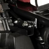 The main platform of the rack is wider and features dimpled and slotted utility plates, creating a flat surface for storage on the top or bottom. It also offers increased stability with the addition of two hinge pivots for better adjustability. The new shorter EZ lift gas shocks and latch strikers provide multiple mounting options, while the latch brackets directly mount to the rear cage bolts, ensuring no contact with the vehicle's body. This design not only offers improved bed clearance but also provides a cleaner overall appearance when installed.