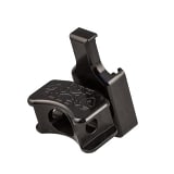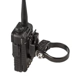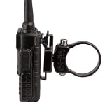 - Mount attaches to the radios belt clip, locking it in to position with the slot in the top