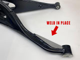 Please note that this gusset is a weld-in product, which means that it will require you to remove your control arms and press out one bushing in order to weld the gussets on. While this process may take a bit of time and effort, the added strength and durability that the gussets provide are well worth it.