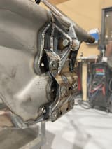 In addition to its functionality, this rear bulkhead also features tear drop weld-in plates to add surface area for bolts, reducing the potential for hole elongation. It also includes an upper weld-in section that ties into the rearward tube of the frame and features a machined aluminum pull/tie-down spot. The kit allows access to the transmission drain plug and is compatible with race plates.