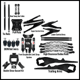 The high clearance radius rod set is specifically designed to increase ground clearance, allowing you to navigate obstacles effortlessly. The tie rods provide improved steering response and precision, ensuring optimal handling in any situation. The rear sway bar links provide better stability and control during sharp turns, preventing unnecessary body roll. The upper and lower control arms are crafted from high-quality materials, delivering exceptional strength and performance. With the 300M upper and lower ball joints, you can expect unmatched durability and longevity, even under extreme conditions. The trailing arms provide superior suspension articulation, allowing for better traction and stability on uneven surfaces.