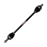 The Demon Powersports Can-Am Maverick R Heavy-Duty HD Axle is designed to withstand the toughest off-road conditions, providing superior strength and durability. This axle features a dual heat-treated high-strength Chromoly steel shaft, upgraded inner cage material to 4340 Chromoly Steel, and TPEE (Thermoplastic polyester elastomer) boots that are stronger, stiffer, and more resistant to fatigue, punctures, and high temperatures compared to standard OEM boots. The unique double plunge design allows for higher articulation angles, with 1.5 inches of plunge travel and 40° articulation over terrain on the inboard joint, while the outboard joint can travel 0.5 inches and swing from 45°-47° depending on the model. Additionally, the axles use molybdenum grease to provide low friction and smooth motion, ensuring a reliable and smooth ride.