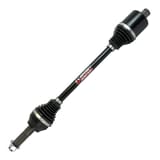 Through years of research and development Demon Powersports has developed an axle that doesn’t burn a hole in your pocket and adheres to the highest quality standards. These axles are bigger, beefier, and stronger. Demon Heavy Duty Axles are built using larger CV joints and shafts, paired with our proprietary dual heat treatment process, and 4340 Chromoly Steel inner CV cage gives these axles the edge it needs for superior strength and longevity. These axles also utilize a unique double plunge design which allows them to achieve higher articulation angles approximately, the axles are designed to slide on the bar splines allowing for 1.5 inches of travel and 40° articulation over the terrain on the inboard joint. The outboard joint can travel 0.5inches and swing from 45°-47° depending on the model. The Demon heavy-duty axles are equipped The TPEE (Thermoplastic polyester elastomer) boots which are stronger, stiffer, more fatigue resistant, puncture-resistant, and more temperature resistant than a standard OEM boot. Axles use molybdenum grease to provide low friction and smooth motion. Trust in Demon Heavy Duty Axles to keep you riding!!
