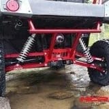 The Kawasaki Teryx Moab kit is the most sought after suspension system for the Teryx platforms as ride quality is improved to a new standard of comfort and control. This is due to the increase in numbers all around on the machine optimizing this kit; +5" per side is added making the car 72" width at the wheels, then an increase wheel base of +3.5" and 16" of Suspension travel doubling stock travel! With these increases in number 28" tires can be used without any further components, but the increased wheelbase is designed to run Larger tires with use of the HCR Bed Lift kit to help eliminate bed rub in the rear Suspension area.