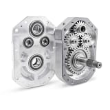 - The dual idler gears spread the load over twice as many teeth on the gear sets, which doubles the area and reduces stress by half.