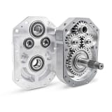 • The dual idler gears spread the load over twice as many teeth on the gear sets, which doubles the area and reduces stress by half.