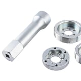 - Tool body accepts a 40mm wrench or socket as well as a 1/2in square drive to aid in installation and removal.