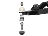 Two-piece ball joints go in your A-arms a little differently than standard ball joints. You press in one side and thread on the other so it pinches the arm like a nut and bolt, meaning it won’t push out easily. To make it even more robust, the stud is thicker because the Defender’s suspension doesn’t travel as much as others. To top it all off, it’s greaseable and adjustable so it always runs like new.
