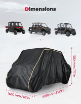 - KEMIMOTO UTV cover is suitable for larger-sized 4-6 seat UTVs. (LxWxH: 167x65x77 inch) You can measure the length, width, and height of your vehicle to make sure the circumference of the body is less than 460'' and the height is less than 83''.