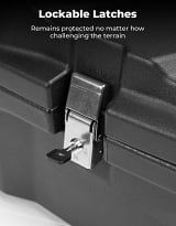 The KEMIMOTO Can-Am Maverick R rear cargo box adopts rubber strip design, which can prevent dust, mud, rain, and snow entering the box. Keeping your items dry and clean. The double-locking mechanism offers a highly secure storage space, protect your gear and belongings.