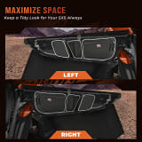 - A place to attach keys on a ring, so they are easy and convenient to be found. Our UTV X3 door bag not just a place to store your stuff but also work as a UTV organizer.