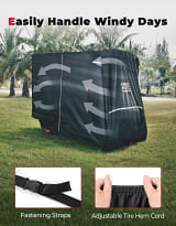 The adjustable tire hem cord and bottom buckle strap design ensure excellent coverage and prevent the cover from being blown away by the wind, tightly wrapping around the golf cart.