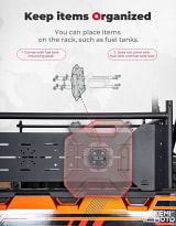 Equipped with mounting holes for accessories like tool holders or fuel tanks. Comes with a fuel tank installation plate for added convenience, though the tank and lock are not included. -