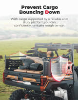 Features a tie-down design reinforced with screws for strong weight support. The rack does not interfere with the rear cargo box dump function or tailgate operation.