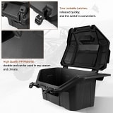 - With durable low-density polyethylene material in black, this pro xp tool box is a tight seal that keeps out dust and any water intrusion. - A better leak-resistance and pressure-resistance feature.