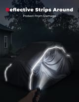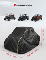 Designed for a snug fit over 4-seat UTVs, the cover features elastic hems, adjustable straps, and quick-release buckles that keep it secure in windy conditions. Dual air vents help prevent moisture buildup and reduce condensation, while reflective strips add nighttime visibility. Whether storing your UTV outdoors or in a garage, this cover provides reliable all-weather protection and peace of mind.