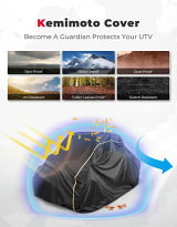 Protect your UTV from the elements with the Kemimoto 4-Seater UTV Cover, compatible with Polaris RZR, Ranger, Can-Am Defender, CFMOTO UFORCE, and Kawasaki Mule models. Built for durability and year-round defense, this heavy-duty cover is crafted from waterproof 420D Oxford fabric with a PU coating to guard against rain, snow, sun, dust, and debris.