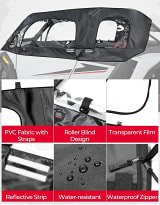 Crafted from durable, water-resistant PVC fabric and clear vinyl windows, the enclosure helps shield you from the elements while maintaining visibility on all sides. The doors attach securely to the frame using heavy-duty zippers, Velcro, and buckle straps—easy to install and remove when the weather clears.