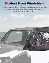 There's no need to worry about the front windshield obstructing the installation of the upper door. Simply remove the strap and attach the nearby hook-and-loop tape to the front bar. This design ensures that the upper door can be installed easily in just a few minutes.