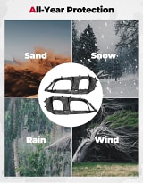 This soft cab enclosure offers protection from sand, dust, and rain during the summer, as well as wind, snow, and cold in the winter. By zipping up to the top on the opposite side, you can easily open the door for entry or exit.