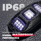 KEMIMOTO rock lights made by IP68 ultrasonic welding process. After our professional test, the waterproof performance of the car rock light is excellent.