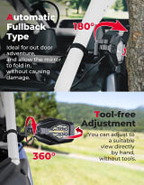 The KEMIMOTO LED lighted mirror offers two degrees of freedom. When hitting an obstacle, it can be quickly folded to prevent damage to the mirror. Supports horizontal rotation of 180° and vertical rotation of 360°, and allows you to mount the mirrors forward or backward for your desired visual angle.