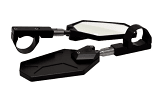 Moto Armor Billet Convex Mirrors offer a custom billet look while working better than any mirror on the market. The low profile billet clamps will not interfere with most windshields. The extended reach design gets the mirror out far enough so you can actually see what is behind you. The slight convex glass design offers a wide view without over distorting the view. Mirrors will breakaway forward and backward to help prevent damage in case of contact with stationary objects.