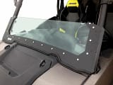 Finally a glass half windshield that will hold up to miles and miles of dirt, sand, and dust without getting all scratched up! Windshield attaches with billet mounts. Designed specifically for stock roll cage with no modification. Does NOT fit with intrusion or dash bars on cage. May not fit aftermarket cages.