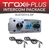The PCI Race Radios Trax Plus Intercom Package includes the Trax Plus Stereo Bluetooth Intercom, two Trax 5-pin 12ft headset/helmet cables, and two 16ft cables with quick disconnect Nexus Mil Spec connections. Additionally, there is an optional upgrade to DSP for those seeking unparalleled noise cancellation.