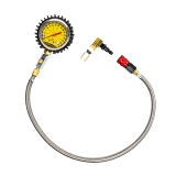 Between the gauge and the clip-on air chuck is 2 ft. of durable stainless steel braided hose. You can clip on to your valve stem, then set the gauge down where it's easily readable or hold it close to your eyes so you don't have to crane your neck to get a tire pressure reading.