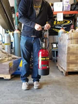 First, take the weight of your Power Tank when completely empty. We recommend keeping the regulator and handle on the bottle when noting this weight. Write it down on the white rectangle on the front warning decal. Now you have something to check against to make sure you received a full fill from your CO2 source and also to make sure they didn't over fill your bottle. You should also weigh your bottle before each outing to make sure you'll have enough CO2 in your Power Tank when you need to air up.