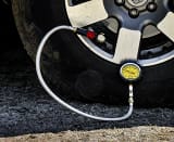 Between the gauge and the clip-on air chuck is 2 ft. of durable stainless steel braided hose. You can clip on to your valve stem, then set the gauge down where it's easily readable or hold it close to your eyes so you don't have to crane your neck to get a tire pressure reading.