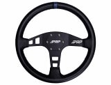 PRP UTV Leather Flat Steering Wheel is designed for the rugged off-road enthusiasts. Crafted from high strength aluminum, this steering wheel is built to withstand the toughest terrains and provide exceptional durability. The matte black finish not only adds to its robustness but also gives it a sleek and cool look.