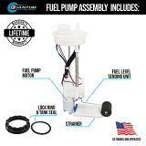Quantum replacement fuel pumps, tank seals and assemblies are designed to meet or exceed OEM specifications, and feature upgrades that improve on the OEM design. Upgraded polymers, brushes, and commutators ensure long life and durability in multiple fuel blends.