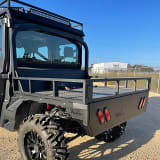 Ranch Armor brings you the first production flatbed for the Can-Am Defender. Easily turn your Defender into the ultimate work horse that will be sure to turn heads no matter where you are. Robust construction featuring: one-piece laser cut and pressed tread plate floor, single-piece 2" bent tube headache rack, side rub/tie down rails, integrated LED tail lights, functional hitch, dump-capable (for maintenance/washing), 2x 1200 pound clamp handle/lock-downs, and of course easy bolt-on design.