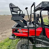 The first and only Honda Pioneer 1000 Aluminum High Seat is here. Ranch Armor brings you a lightweight, ultra strong, and versatile high seat that bolts/secures to you Honda Pioneer 1000 bed. The large aluminum diamond plate foot platform provides plenty of room for standing. Ladders and rifle rest all tie into each other via a bent/notch design that utilizes 2" aluminum pipe. High seat legs are laser-cut 1/4" aluminum with reinforced upright supports.