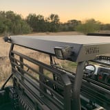 A Kawasaki Mule Pro FXT Metal Roof that is rugged, looks good, and functional. Ranch Armor is the only manufacture of Mule Pro FXT metal tops that has a fully integrated optional rear hatch allowing rear roof portion to open with ease enabling dump bed to be used in extended mode. Endless options and packages to create the perfect top for your Mule Pro FXT.