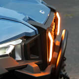 RAVEK Apex Lights Turn Signal Kit for Polaris Xpedition offers premium, plug & play functionality with a quick, no-splice install. Featuring durable, IP67-rated rigid lights, it integrates with OEM brake lights for turn signals and a rapid-pulse braking alert. Mount on any flat surface or roll bar for maximum visibility. Includes a street-legal setup with a horn, license plate illuminator, and backlit smart rocker switches. Upgrade with RAVEK’s rear Apex Lights for even more customization.