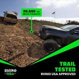 The Rhino USA 7/8" x 30' Kinetic Rope Recovery Kit is the ultimate off-road rescue solution, engineered for unmatched safety, durability, and performance. Designed for trucks, Jeeps, 4x4s, and ATVs, this kit combines a high-strength 7/8" kinetic rope (30,400 lbs min. break strength) with (2) 3/8" synthetic soft shackles (31,400 lbs break strength) and a heavy-duty storage bag. Unlike rigid tow straps, the kinetic rope stretches up to 30%, absorbing 4x more energy for smoother, safer recoveries while reducing shock on vehicles. The ultra-strong synthetic soft shackles outperform metal D-rings with a noiseless, lightweight design and rapid deployment. Backed by a Lifetime Warranty and trusted by adventurers worldwide, this kit ensures reliability in the toughest conditions. Includes Prop 65 warning for DEHP exposure—safety tested for peace of mind.