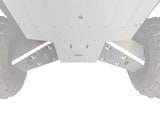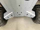 One of the most vulnerable and less protected parts of your Honda Pioneer 1000 are your A-arms and CV joints. But you can protect both with our 5/32'' Marine grade Aluminum A-Arm Protectors. With a high folded front edge that protects your A-Arms from impact and your CV Boots from sticks hitting and tearing and letting dirt in there to wreck the joints. We also have drain holes on the underside to let dirt, grass seed, and sand that has built up to fall out or be washed out. Our A-Arm Guards utilize both factory mounting points and steel brackets to give maximum strength when mounting. We also use a stamping procedure to allow extra strength for the A-Arm Guard and for our high strength bolts to be recessed to allow a flat surface for sliding over any obstacle you might come across on the trail. PART NUMBER ONLY INCLUDES REAR A-ARM GUARDS