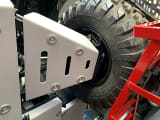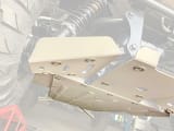 The Rival Powersports Kawasaki Mule PRO-MX/EPS/EPS LE Alloy A Arm Guards (Rear) are high folded front edge that protects your A Arms from impact and your CV Boots from sticks hitting and tearing and letting dirt in there to wreck the joints. We also have drain holes on the underside to let dirt, grass seed and sand that has built up to fall out or to be washed out. Our A Arm Guards utilise both factory mounting points and steel brackets to give maximum strength when mounting. We also use a stamping procedure to allow extra strength for the A Arm Guard and for our high strength bolts to be recessed to allow a flat surface for sliding over any obstacle you might come across on the trail. PART NUMBER ONLY INCLUDES REAR A ARM GUARDS