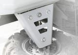 One of the most vulnerable and less protected part of your Yamaha Viking / VI are your A arms and CV joints. But you can protect both with our 5/32'' Marine grade Aluminum A Arm Protectors. With a high folded front edge that protects your A Arms from impact and your CV Boots from sticks hitting and tearing and letting dirt in there to wreck the joints. We also have drain holes on the underside to let dirt, grass seed and sand that has built up to fall out or to be washed out. Our A Arm Guards utilize both factory mounting points and steel brackets to give maximum strength when mounting. We also use a stamping procedure to allow extra strength for the A Arm Guard and for our high strength bolts to be recessed to allow a flat surface for sliding over any obstacle you might come across on the trail. PART NUMBER ONLY INCLUDES FRONT A ARM GUARDS