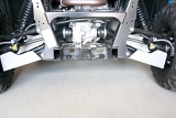 One of the most vulnerable and less protected part of your Yamaha Viking / VI EPS are your A arms and CV joints. But you can protect both with our 5/32'' Marine grade Aluminum A Arm Protectors. With a high folded front edge that protects your A Arms from impact and your CV Boots from sticks hitting and tearing and letting dirt in there to wreck the joints. We also have drain holes on the underside to let dirt, grass seed and sand that has built up to fall out or to be washed out. Our A Arm Guards utilise both factory mounting points and steel brackets to give maximum strength when mounting. We also use a stamping procedure to allow extra strength for the A Arm Guard and for our high strength bolts to be recessed to allow a flat surface for sliding over any obstacle you might come across on the trail. PART NUMBER ONLY INCLUDES REAR A ARM GUARDS