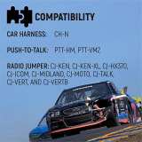 Designed to work with standard NASCAR car harnesses, the kit includes a coil cord, dynamic noise-canceling mic, full-flex boom, and 3.5mm jack for use with your favorite mono earbuds.
