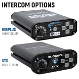 696PLUS high fidelity or STX true stereo! The 696PLUS intercom is Rugged Radios most popular intercom with high fidelity music and superior voice clarity. Features upgraded Bluetooth and total cell phone control. The STX intercom offers the same cell phone control features with high fidelity music and true stereo for real audiophiles.