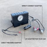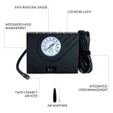 The Power Sport Tire Inflator is the perfect inflator for your motorcycle, ATV or small car. Its compact and powerful design features interchangeable connectors for multiple power sources and a rigid carrying case that stores easily in your saddle bags.