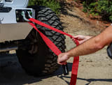 Wrap – one end of the strap around an axle, through a shackle, or around any good tow point.