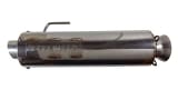 These mufflers have a brushed stainless steel shell with a welded inlet end cap, and a steel core with packing material and a built-in spark arrestor. They are 100% rebuildable with all inner parts being removable. They come standard with a stainless steel turn down, but aluminum endcaps with a natural finish or anodized black, red, blue, gold, or green are available as an upgrade as well. These are assembled as ordered due to these options, so please allow 2-3 business days before shipment.