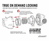 SwifTrac utilizes a Sprague carrier to engage and disengage the diff lock automatically. With four-wheel drive engaged, this differential uses the Sprague carrier to lock instantly as soon as traction's needed and unlock when it's not. No wind up and no delay. You can cruise through trails at full speed and get torque to the front tire that needs it most, instead of spinning your wheels. You don't have to think about it, it just works.